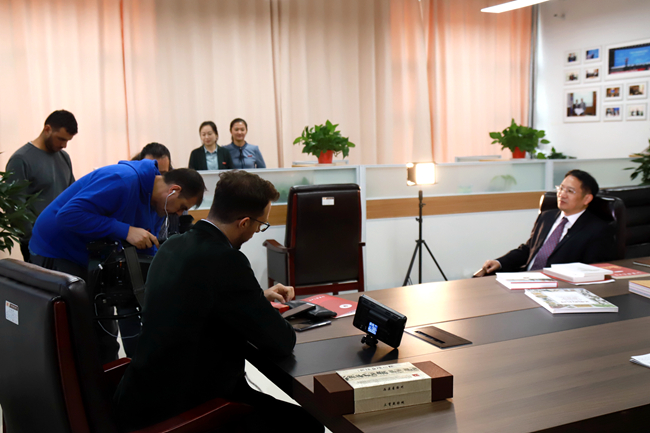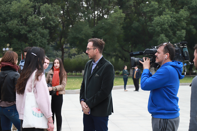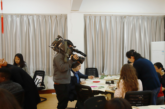 访谈结束后,阿根廷国家电视台摄制组走进校园,多处取景,拍摄校园风光,并在国际学院拍摄了留学生的中国文化体验活动,旨在以纪录片的形式反映我校中外学生的精神风貌和学习生活状况。