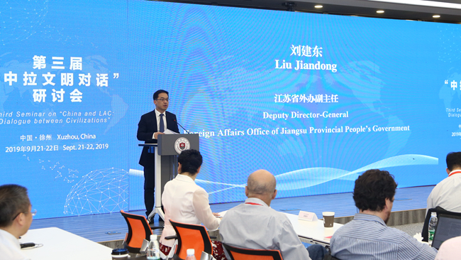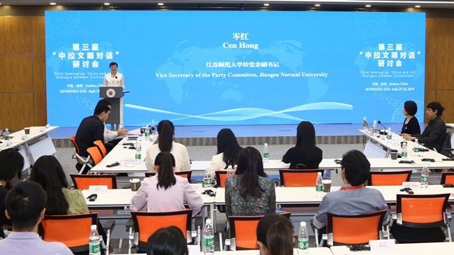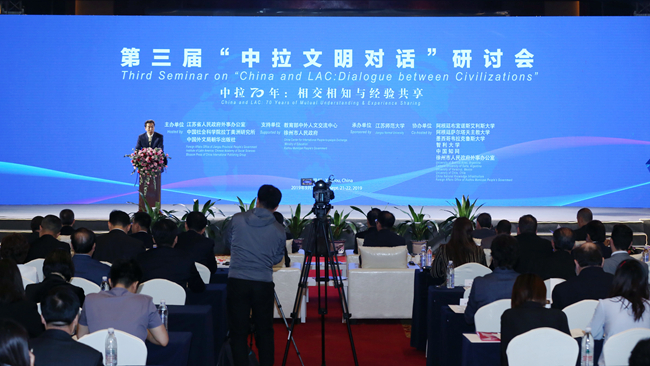 9月21-22日,中拉70年:相交相知与经验共享——第三届“中拉文明对话”研讨会在我校举办。本届会议由江苏省人民政府外事办公室、中国社会科学院拉丁美洲研究所、中国外文局朝华出版社联合主办,江苏师范大学承办,阿根廷布宜诺斯艾利斯大学和萨尔塔天主教大学、智利大学、墨西哥维拉克鲁斯大学、中国知网和徐州市人民政府外事办公室协办,并得到了教育部中外人文交流中心和徐州市人民政府的鼎力支持。来自中国和拉美10国的政府官员、外交使节、高校学者、企业家、记者,以及文化传播机构代表共计200余人参加了本次研讨会。我校党委书记华桂宏、校长周汝光出席大会开幕式,并参加了各环节活动。