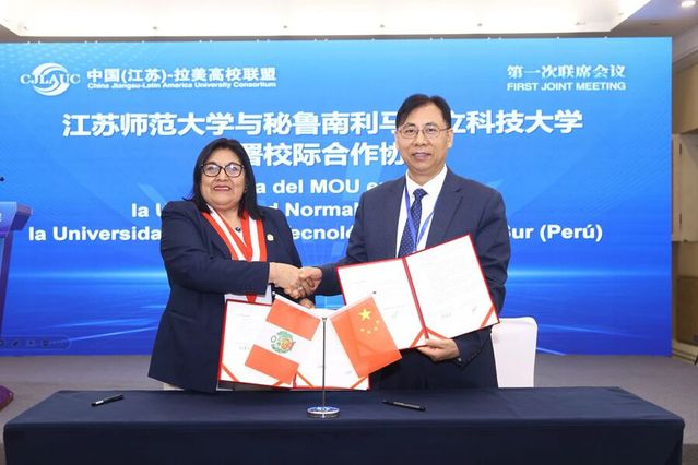 南利马国立科技大学校长格拉迪斯·克鲁兹高度评价江苏师范大学的国际化办学成就。她表示,高等教育的未来必须通过国际化合作实现,南利马国立科技大学作为一所致力于科学、创新和可持续发展的院校,期待与江苏师范大学展开深度合作。克鲁兹特别提到,希望借鉴我校在校企合作方面的成功经验,提升秘鲁高校服务社会发展的能力,助力秘鲁可持续发展。克鲁兹诚挚邀请杜增吉访问南利马国立科技大学,并提出“三步走”合作愿景:短期推动师生互访,中期开展联合培养项目,长期实现双学位合作。