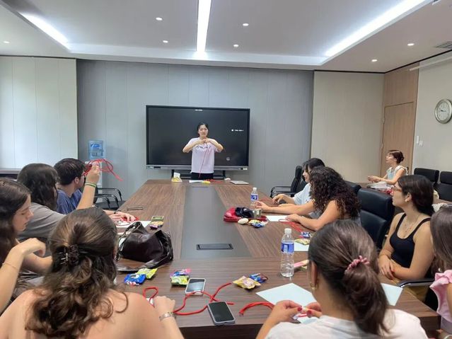 课程结束后,学员们与国别区域研究专业研究生共同开展了文化体验活动。在我院研究生的指导下,国际学生亲手制作了寓意团结、友谊与美好祝愿的中国结。学员们纷纷表示,通过亲身体验,不仅加深了对中华优秀传统文化的理解,也更加直观、生动地感受到了中国文化的独特魅力与精神内涵。