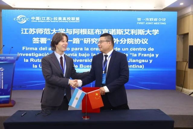 随着中拉文明交流不断深化,“一带一路”合作持续拓展,基地立足长期研究积累和实践探索,积极推动“一带一路”在人文交流与学术合作层面向拉美地区延伸。2025年底,基地依托既有中拉合作基础,持续推进与阿根廷布宜诺斯艾利斯大学的机制化对接,并正式签署共建江苏师范大学“一带一路”研究院阿根廷分院协议,标志着我校“一带一路”研究在拉美实现实质性落地。