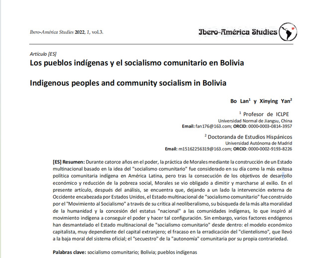 在拉丁美洲多民族国家建构的讨论中,玻利维亚莫拉莱斯政府以“族群社会主义”为理念推进国家重塑,一度被视为原住民政治参与与减贫发展相结合的典型实践。基地研究员与马德里自治大学合作发表在《Ibero-América Studies》的相关研究成果系统梳理了玻利维亚多民族国家的制度设计、意识形态基础与治理运行机制。为理解拉美多民族国家模式的制度边界与结构性风险提供了具有解释力的分析框架,也为比较研究原住民政治与国家建构关系提供了重要参考。